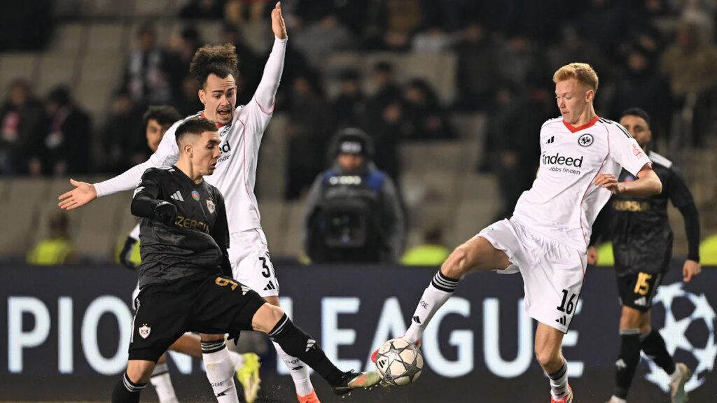 Doch die Gäste ließen sich von der hitzigen Stimmung und dem eisigen Winterwetter in Baku nicht einschüchtern – und glichen schnell aus. Der junge Uzun luchste einem Gegenspieler im Strafraum den Ball ab und schoss mit links platziert ins Eck. In Abwesenheit diverser Stürmer (Jonathan Burkardt fehlt verletzt, Arnaud Kalimuendo ist nicht für die Königsklasse gemeldet) spielte der 20-Jährige diesmal in der vordersten Spitze.Nach den zwei schnellen Toren hatte Uzun zwar eine weitere Schusschance (15.), doch dabei blieb es vorerst auch. Stattdessen spielten hauptsächlich die Gastgeber, die in dieser Königsklassen-Saison schon einen Sieg bei Benfica Lissabon eingefahren und dem FC Chelsea ein Remis abgetrotzt hatten. Einen Flachschuss von Duran (37.) konnte der Brasilianer Santos mit exzellenter Reaktion entschärfen.