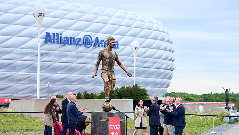 Gerd Müller steht ab sofort vor der Allianz Arena nicht mehr allein. Der Bomber hat Gesellschaft bekommen. Vom Kaiser. Franz Beckenbauer steht seit Freitag unweit des ehemaligen Stürmers. Natürlich in Form einer Statue. Eine Delegation um Witwe Heidi Beckenbauer, Ehrenpräsident Uli Hoeneß und Präsident Herbert Hainer enthüllten am Freitagnachmittag das Bronzeabbild.