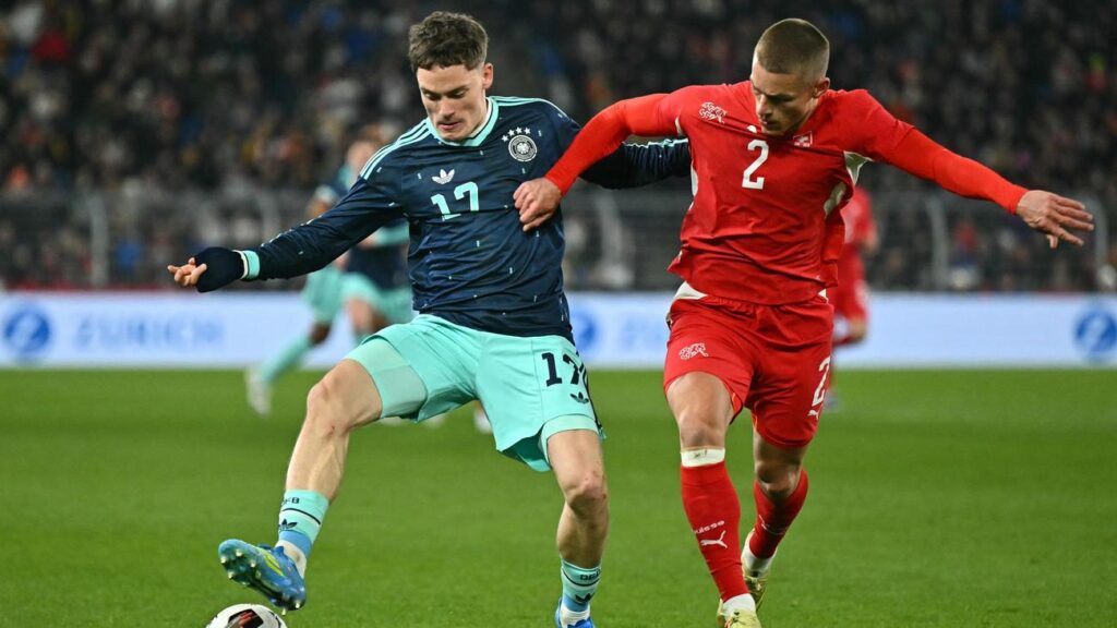 In der 17. Minute ging die Schweiz mit einem Treffer von Dan Ndoye in Führung. Knapp zehn Minuten später glich Jonathan Tah (26.) für Deutschland aus. Kurz vor der Pause brachte Stürmer Breel Embolo (41.) die Schweizer erneut in Führung, Serge Gnabry (45.+2) sicherte zur Halbzeit jedoch erneut den Ausgleich für die DFB-Elf. Nach der Pause gelang den Deutschen erstmals die Führung mit einem Tor von Florian Wirtz (62.), bevor der Schweiz wieder der Anschluss durch Joël Monteiro (78.) glückte. Kurz darauf brachte Wirtz (86.) die deutsche Mannschaft ein zweites Mal in Führung.