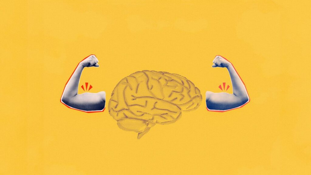 Illustration - Ein Gehirn zeigt Bizeps