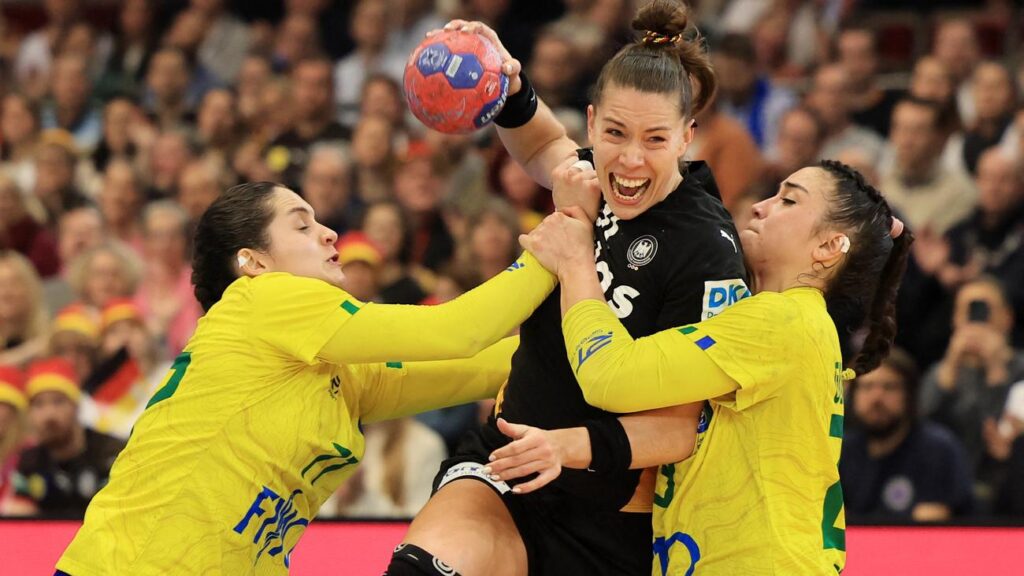 Kapitänin Antje Döll (6 Tore) und Emily Vogel (5) waren die besten deutschen Werferinnen. Letztere sorgte mit zwei schnellen Toren am Beginn für das 3:1 (3.). In der Folge setzte sich das deutsche Team weiter ab. Hinten zeigte die Defensive um Abwehrchefin Aimée von Pereira Beweglichkeit und Härte, vorne waren die Werferinnen um Vogel erfolgreich. Selbst vom brasilianischen Zwischensprint auf 9:7 (16.) aus deutscher Sicht ließ sich das DHB-Team nicht verunsichern und zog dank vier Toren von Döll noch vor der Halbzeit wieder auf 14:9 (26.) davon.