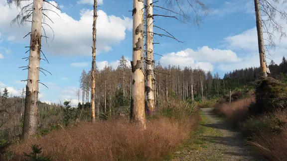 Abgestorbene Fichten prägen in den höheren Lagen des Harzes das Bild. In einigen Jahren soll sich dort ein gesunder Mischwald etabliert haben.