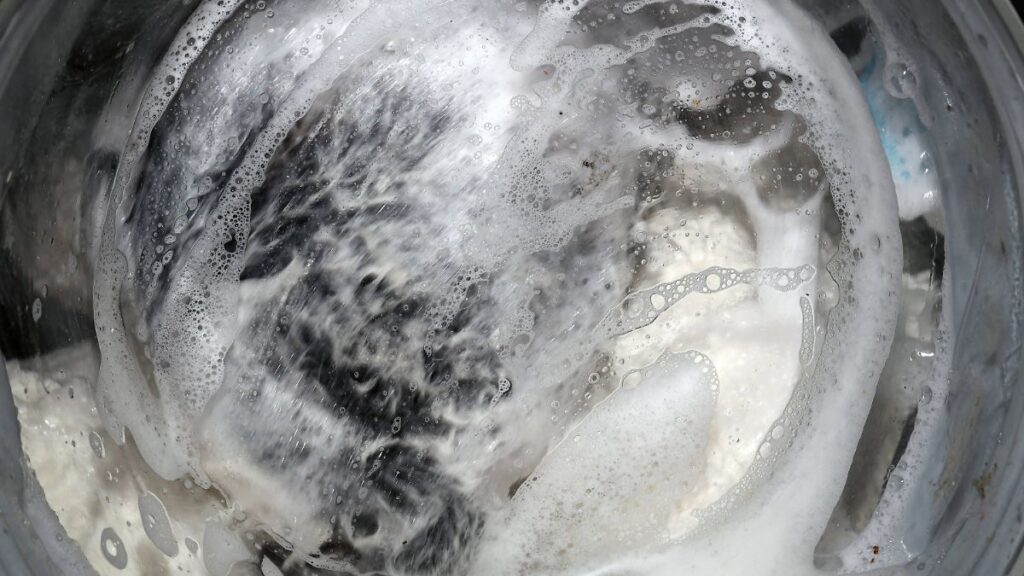 Falsch! Das Gegenteil ist der Fall: Wird zu viel Waschmittel verwendet, kann die Maschine es nicht vollständig ausspülen. Die Folge: Waschmittelrückstände bleiben in den Fasern, was sogar Hautirritationen auslösen kann. Außerdem lagert sich ein klebriger Film in der Maschine ab. Das begünstigt Bakterien und unangenehme Gerüche. Es empfiehlt sich, sich strikt an die Dosierempfehlung auf der Packung zu halten, angepasst an die Wasserhärte der Region.