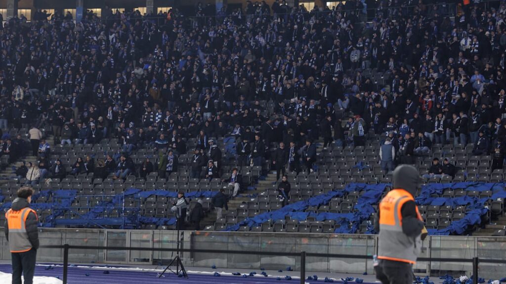 „Am Stadioneingang zur Ostkurve sollen Kolleg. nach Beleidigungen von vermummten Fans u.a. mit Absperrgittern beworfen und mit Schlagwerkzeugen attackiert worden sein“, teilte die Berliner Polizei auf dem Portal X kurz nach der Partie mit. „Aufgrund der Gewalt- und Bedrohungslage war es zum Schutz der Einsatzkräfte und unbeteiligter Zuschauenden notwendig, Pfefferspray gegen größere Gewalttätergruppen einzusetzen.“