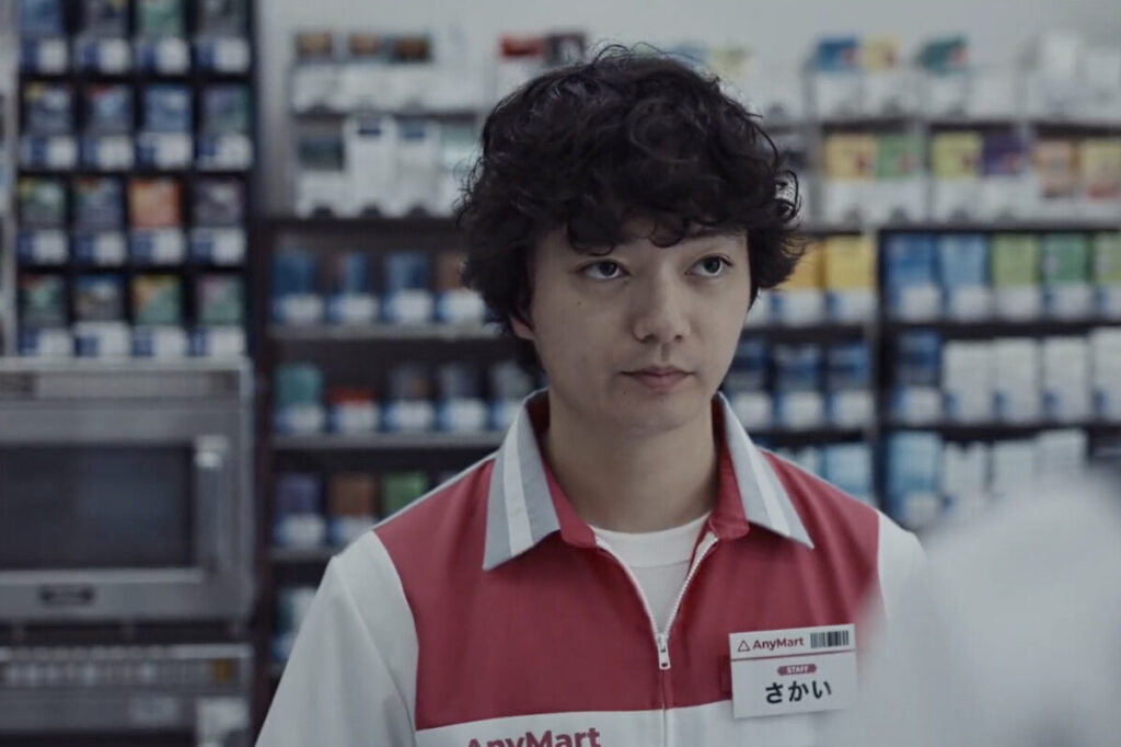 „Anymart“ ist das Spielfilmdebüt des Regisseurs Yusuke Iwasaki, zu sehen in der Sektion „Forum“. Als Hauptfigur steht der Supermarktangestellte Sakai (Shota Sometani) darin stoisch hinter einer Registrierkasse und antwortet ohne erkennbare Anteilnahme auf die Fragen von Kunden, sofern sie überhaupt mit ihm sprechen.