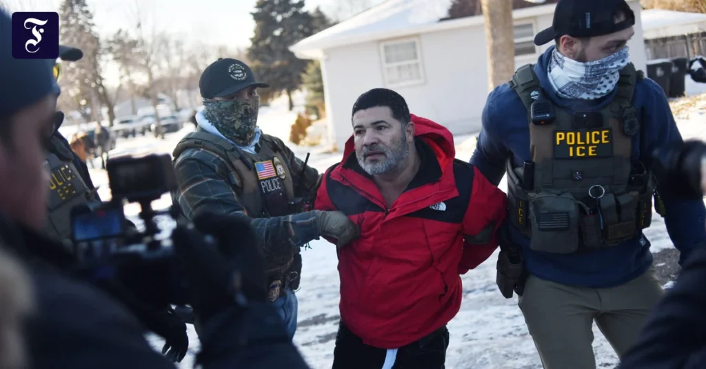 US-Einwanderungsbeamte von ICE nehmen am Dienstag in St. Paul (Minnesota) einen Mann fest.