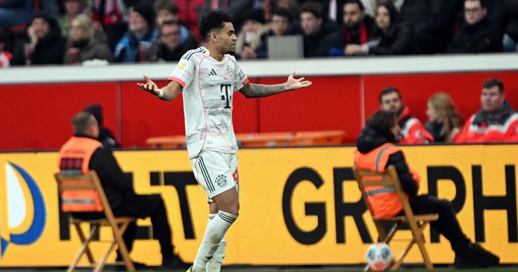 Nach dem 1:1 bei Bayer Leverkusen herrscht beim FC Bayern München großes Unverständnis mit der Schiedsrichterleistung. Vor allem die Gelb-Rote Karte gegen Luis Diaz in der 84. Minute verstand beim deutschen Fußball-Rekordmeister niemand. „Ich will nicht für einen Elfmeter plädieren, aber das ist im Leben keine Schwalbe“, sagte Joshua Kimmich bei DAZN. „Wenn ich die Bilder sehe, dann ist ein Kontakt da. Den kann man nicht leugnen.“