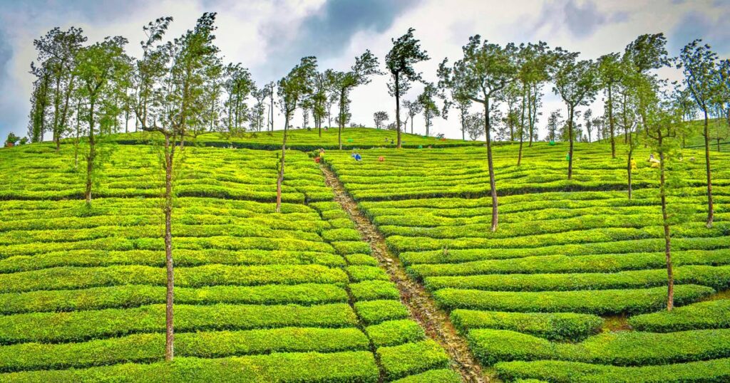 Jedes noch so kleine Fleckchen Erde ist kostbar – Kerala ist an seiner schmalsten Stelle nur 35 Kilometer breit – und wird genutzt. Selbst entlang der Stämme der Silber-Eichenbäume, die auf den einst von den britischen Kolonialherren angelegten Teeplantagen Schatten spenden, ranken sich Pfefferpflanzen.