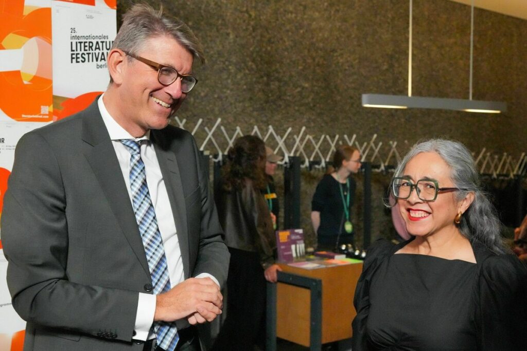 Im Anschluss an Rivera Garza stellte der studierte Germanist Wolfram Weimer seine Literaturkenntnisse unter Beweis. Internationale Literaturstars wie Arundhati Roy, Abdulrazak Gurnah und Isabel Allende treten beim diesjährigen ilb auf, der Kulturstaatsminister assoziiert jedoch eher im deutschen Sprachraum. Hölderlin sei ihm in den Sinn gekommen, auch ein Rilke-Zitat zum Thema Atmen hatte er sogleich zur Hand. Weimer wechselte sodann in politisches Fahrwasser: Er erwähnte „Ressentiments von rechts“, auch der Antisemitismus mache ihm Sorgen.