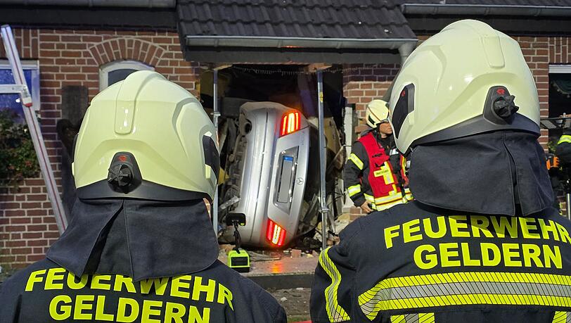 Ein junger Autofahrer ist in Geldern am Niederrhein mit seinem Fahrzeug in den Eingangsbereich eines Einfamilienhauses gekracht. „Der Pkw durchschlug die Eingangstür und blieb auf der rechten Fahrzeugseite im Hausflur liegen“, heißt es im Polizeibericht vom Samstag. Zunächst hatte „bild.de“ über den Unfall berichtet.