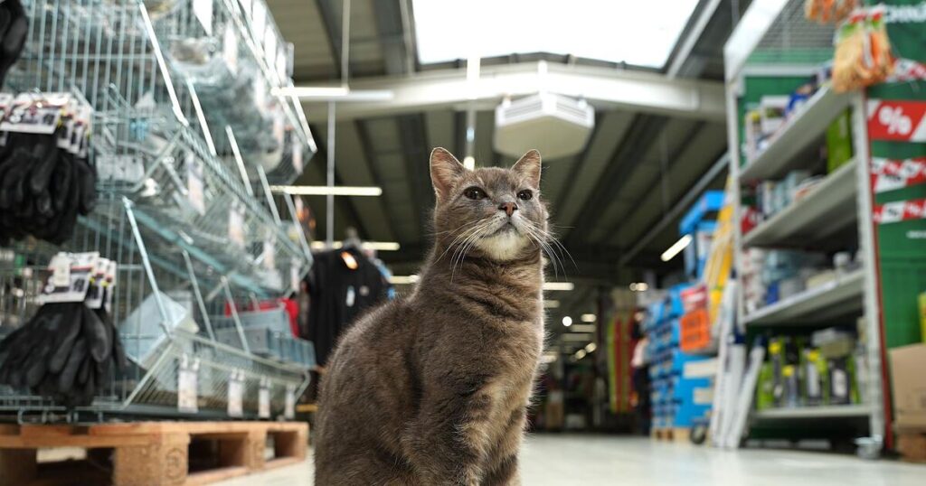 Seit dem letzten Sommer sei Lotti jeden Tag im Markt, streunere durch die Gänge – vorbei an Schrauben, Blumenerde und Glühbirnen – und lasse sich von den Mitarbeitern des Markts mit Leckerlis verwöhnen. Am häufigsten findet man die bereits 18 Jahre alte Katze allerdings auf ihrem Platz auf einer Decke zwischen den Regalen. Hier steht auch ihr Futternapf.