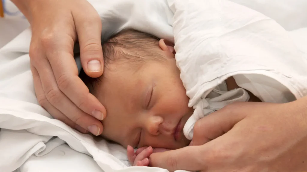 Zwei Hände umfassen einen schlafenden Säugling. | fotolia, Herrndorff