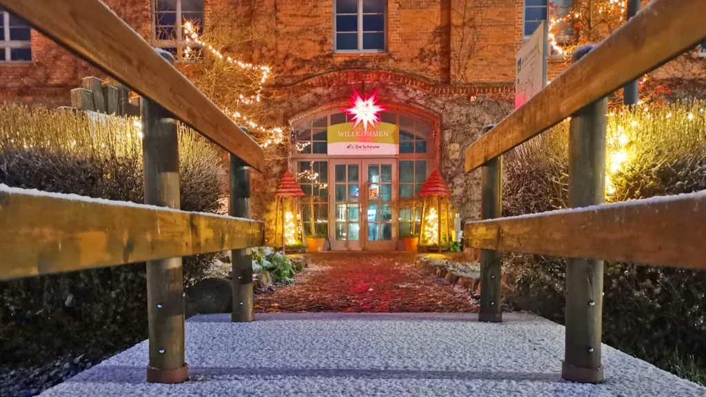 Am Sonnabend um 11 Uhr erfolgt der feierliche Anschnitt eines riesigen Weihnachtsstollens. Außerdem stehen Live-Musik, Lesungen und eine Kochshow auf dem Programm. Kinder können basteln und Plätzchen verzieren, bei einer Scheunen-Olympiade winken kleine Gewinne. Außerdem sorgen Weihnachtskino und Puppentheater für Unterhaltung.