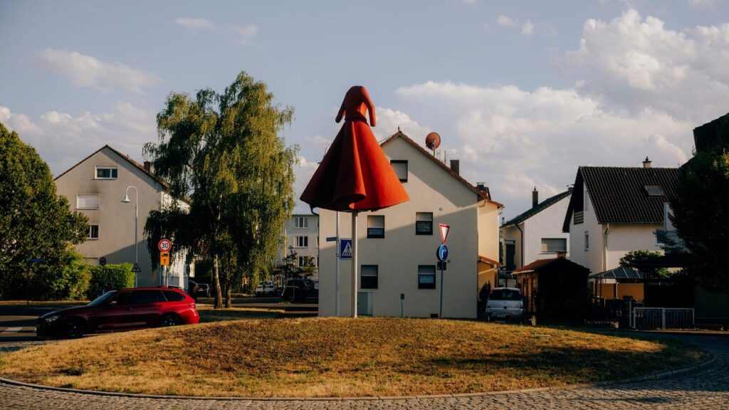 Die rote Frau, so wird sie in Eislingen genannt, und da muss Luithle schon ein wenig lachen. „Keine Hände, keine Beine, kein Kopf, was soll das für eine Frau sein? Nur ein Kleid, mehr ist da nicht, das habe ich den Leuten auch erklärt: nur ein Kleid. Und das hat sie dann doch interessiert.“ Denn wie geht so etwas, dass dort, an ihrer Ortseinfahrt, eine Frau sich dreht, die keine Frau ist. Und dass diese Wegweiserin immer andere Wege weist, als wüsste sie selbst nicht, wohin es eigentlich gehen soll. Oder als wollte sie alle, die vorbeifahren, kurz ein wenig verwirren. Damit sie ebenfalls ins Rotieren geraten und sich am Ende, wer weiß, auf eine Route begeben, die nicht ihre Route ist, kopflos wie die Keine-Frau-Frau und ohne ein rechtes Ziel zu kennen. „Die Leute mögen das“, sagt Luithle. „Mich wundert’s auch manchmal.“