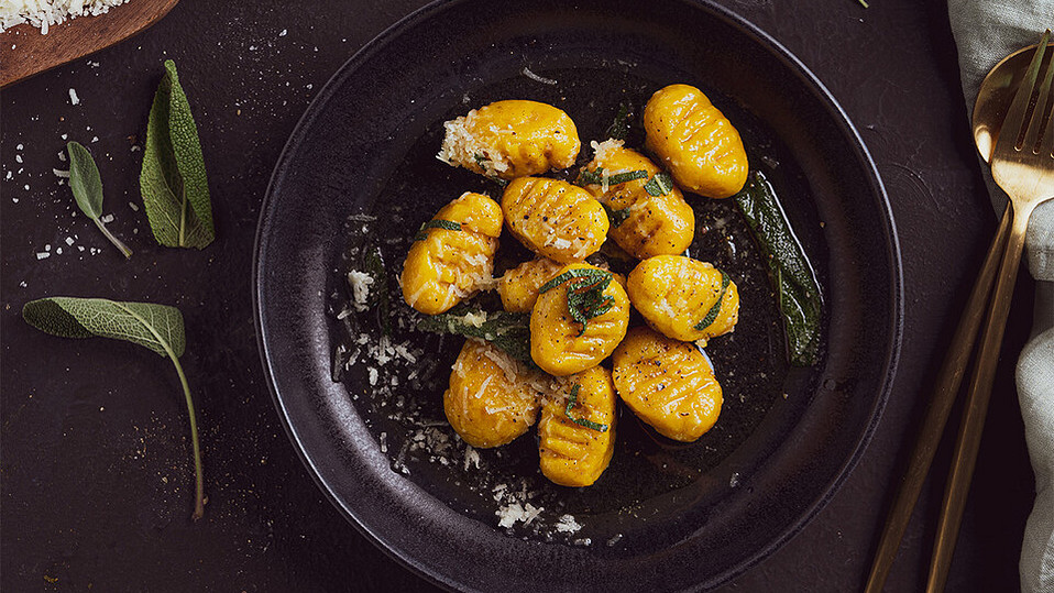 Die Gnocchi zum Servieren auf tiefe Teller verteilen, mit Salbeibutter beträufeln und mit dem zusätzlichen Parmesan bestreuen.