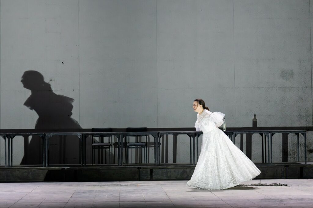 In Barrie Koskys Inszenierung liegt die Bühne bar allen augenwärmenden Dekors da. Nackte graue Wände korrespondieren mit der trostlosen Kälte der dargestellten menschlichen Beziehungen. Die Titelheldin, verheiratet mit einem impotenten Langweiler, leidet unter der Lieblosigkeit ihres Daseins und den Nachstellungen ihres um so virileren, diktatorischen Schwiegervaters. Hungrig nach sinnlichen Erfahrungen, verfällt sie dem Knecht Sergei – der in dieser Bühnenversion mehr ist als nur ein Schürzenjäger, sondern ein Vergewaltiger.