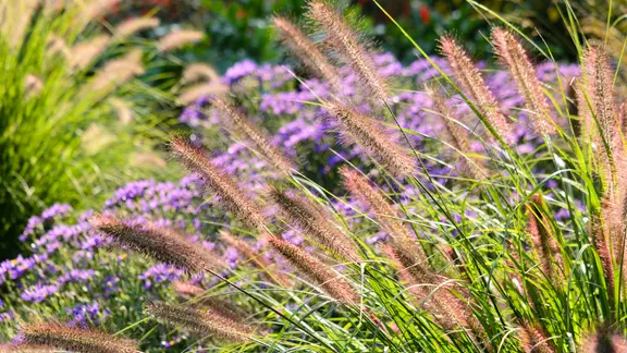 Von Juli bis Oktober blühen die buschigen, weichen Ähren des Lampenputzergrases und setzen insbesondere im tief stehenden Abendlicht tolle Akzente im Garten. Niedrig wachsende Sorten werden nur rund 30 Zentimeter, höhere Sorten bis zu 1,50 Meter hoch. Das auch als Federborstengras bekannte Ziergras harmoniert im Beet wunderschön mit Stauden wie Fetthenne, Sonnenhut, Herbst-Anemone oder Aster. Aber auch als Solitär im Beet oder im Kübel ist es ein dekorativer Hingucker.