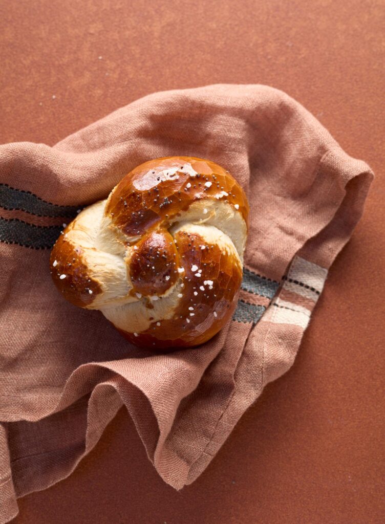 Durch den aufgewickelten Strang reißt die Krume beim Auseinanderbrechen faserig auf und ist wunderbar fluffig. Der Knopf ganz oben auf dem Brötchen verführt geradezu, ihn abzureißen und als erstes zu essen.