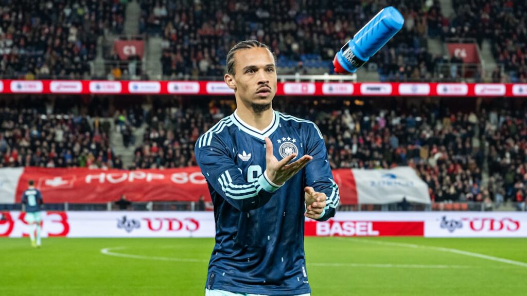 Das Spiel in der Schweiz sei in Ordnung gewesen. „Aber es war auch nicht richtig gut und auch nicht richtig schlecht. Besser, als es dargestellt wird, aber auch nicht so, dass wir super, super zufrieden sind. Leroy weiß, was gefordert ist. Er muss das zeigen, und am Ende entscheiden wir, was aus unserer Sicht das Beste für den Kader ist. Wir müssen gucken, dass wir die gewissen Profile erfüllen, um in Bezug auf die unterschiedliche Art und Weise, wie ein Gegner spielen kann, gewappnet zu sein. Und allzu viele Spieler, die vom rechten Flügel aus ein Eins-gegen-Eins gewinnen, haben wir nicht.“