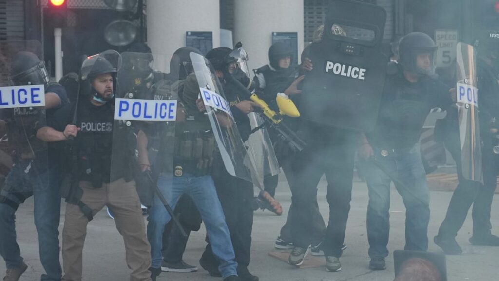 Die Aktion wurde von Einsatzkräften der Immigration and Customs Enforcement (ICE) an mehreren Orten, darunter auch im „Fashion District“, durchgeführt. Dort versuchten Demonstrierende, die Abfahrt der Behördenfahrzeuge zu blockieren. Sirenen heulten, während schwarze SUVs von Menschen umringt wurden. Beamte setzten Blendgranaten ein. „Ein Demonstrant versuchte sogar, ein Fahrzeug physisch an der Weiterfahrt zu hindern“, hieß es.
