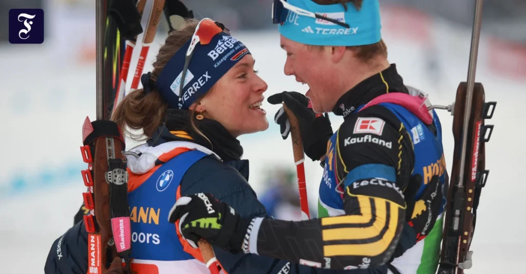 Im Single Mixed war es der erste deutsche Sieg seit dem 20. Januar 2024, als sich Vanessa Voigt und Justus Strelow auf der Olympiastrecke von Antholz Platz eins gesichert hatten. „Ich kann das noch gar nicht begreifen, dass wir jetzt ganz vorne, ist unbeschreiblich“, sagte Fichtner am ARD-Mikrofon. „Ich habe mich einfach von der Euphorie tragen lassen“, sagte Weltcup-Debütant Pfund: „Richtig geil.“