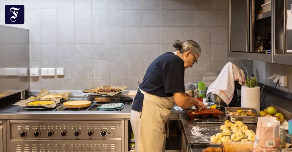 Beruflich aktiv bis ins Alter: eine Bäckerin in einem Café in Kronberg nahe Frankfurt