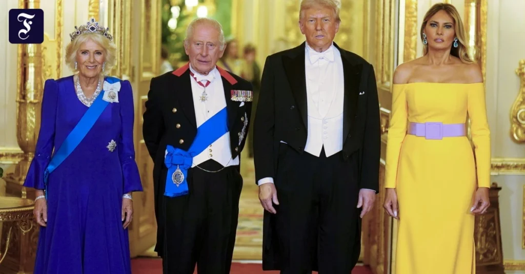Das war noch nicht alles. Der Auftritt beim Staatsbankett am Mittwochabend ging ebenfalls daneben. Sogar Donald Trump selbst war passend im Frack gekleidet. Und Camilla, immerhin 78 Jahre alt, sah in ihrem langen blauen Abendkleid passabel aus. Melania hingegen passte mit ihrem gelben Kleid mit blassrosafarbenem Gürtel und hohem Beinschlitz nicht ins Bild. Schon aus Gründen der Solidarität mit der um 23 Jahre älteren Königin war es unhöflich von der First Lady, ein schulterfreies Abendkleid zu tragen und sie auch noch mit einer leuchtenden Farbe zu überstrahlen.