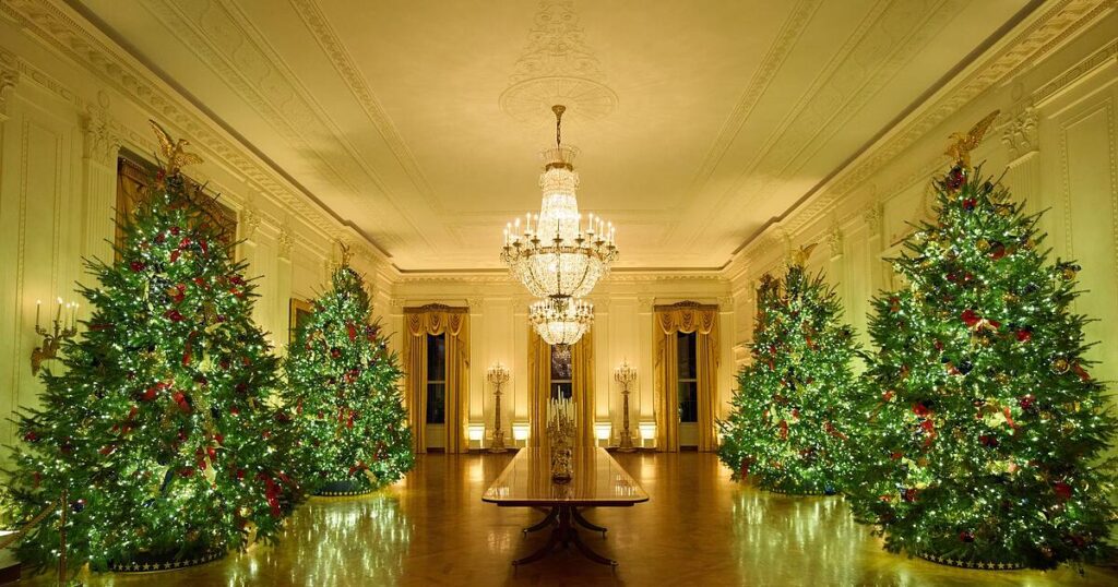 Dass Melania Trump so viele Bäume aufstellen lässt, ist keine Neuheit. Bereits in Trumps erster Amtszeit hatte die First Lady Medienberichten zufolge Dutzende ins Weiße Haus beordert. Zu Weihnachten 2020 sollen es gut 60 Stück gewesen sein. Die frühere First Lady und Ehefrau von Ex-Präsident Joe Biden, Jill Biden, hatte Berichten zufolge im vergangenen Jahr das Weiße Haus gar mit mehr als 80 Bäumen dekoriert.