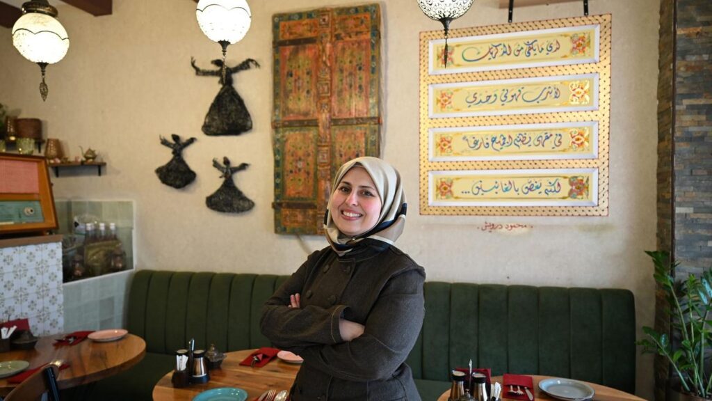 Malakeh Jazmati sitzt in ihrem Restaurant in Berlin-Schöneberg. Hinter der 39-jährigen Syrerin liegen aufregende Tage. Der syrische Übergangspräsident Ahmed al-Scharaa hatte erstmals Berlin besucht. Und Jazmati, die im arabischen Raum als TV-Köchin bekannt wurde, hat ihn im Hotel zum Essen mit selbst zubereiteten traditionellen syrischen Gerichten getroffen, berichtet sie.