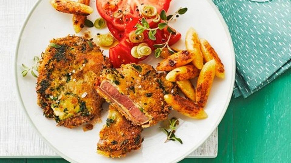Das Fleisch zuerst im Mehl, danach im Ei und dann in der Semmelbröselmischung wenden. Dabei die Panade gut andrücken. In der Pfanne Öl oder Butter heiß werden lassen und die Steaks von beiden Seiten langsam goldbraun braten.