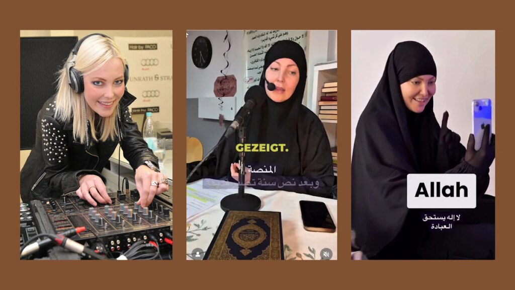 Drei Minuten dauert das Video, das Hansen von dem Gespräch gefilmt hat, und Zehntausende haben es gesehen. Sie hat es bei Instagram und Tiktok hochgeladen, wo sie auch all die anderen Videos gepostet hat von den Frauen, die sie schon zu Allah geführt hat: eine 22-Jährige aus Frankfurt, eine 37-Jährige aus Hamburg, eine 25-Jährige aus Dresden und so weiter. Um zum Islam zu konvertieren, muss man keine angestaubte Zeremonie durchlaufen wie die Taufe im Christentum. Man kann das mit sich und Allah ausmachen. Oder halt mit Hanna Hansen.