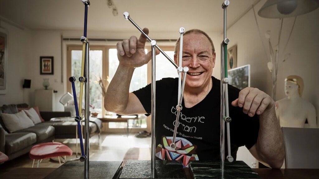 Das Chaos wohnt in einem Randbezirk von München, zwischen Reihenhäusern mit Spitzdach und einer Ladestation für E-Autos. Seine Klingel sieht aus wie ein Lichtschalter. Einmal klingeln, zweimal, warten. Griff zum Handy – „Oh, ich war in der Werkstatt im Keller, ich habe Sie gar nicht gehört!“ –, und dann steht Gabriel Schneck in der Tür. Ein Mann in den Sechzigern, mit Filzpantoffeln und einer Sonnenfinsternis auf dem Bauch. (Ein Albumcover der Techno-Gruppe Tangerine Dream, wie er später erzählt.)