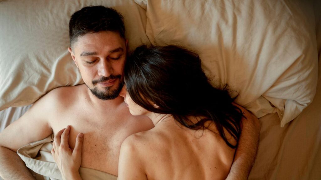 Auch für das Liebesleben kann das Nacktschlafen positive Effekte haben. So hat man herausgefunden, dass Menschen, die Haut an Haut mit dem Partner schlafen, Oxytocin ausschütten. Der Botenstoff ist auch als Kuschelhormon bekannt und kann beruhigend wirken und zufriedener machen. Das Hormon kann auch dazu beitragen, dass Ängste und Stress abgebaut werden und die Verbindung zum Partner gestärkt wird.
