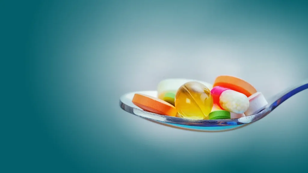 Ein Löffel mit verschiedenen bunten Pillen | smarterpix/Lighthunter
