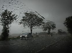 Logisch, wenn es stark regnet, wird die Sicht immer schlechter. Auch hier muss man dann den Fuß vom Gas nehmen und noch mehr Abstand zu den Vorausfahrenden halten. Falls es nicht automatisch passiert, stellt man die Geschwindigkeit der Scheibenwischer entsprechend der herunterprasselnden Wassermenge ein und schaltet das Abblendlicht an.