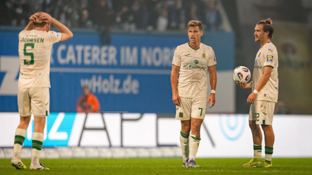 Rostock war als Aufstiegsaspirant überhaupt nicht gut in die Spielzeit gestartet. Doch diesmal kam Sechzig überhaupt nicht mit der aggressiven Hansa-Spielweise klar, sodass Glöckners Mannschaft innerhalb von sieben Minuten drei gelbe Karten kassierte, darunter in Siemen Voet und Jesper Verlaat zwei Spieler aus der Dreier-Abwehrkette. Nach der verdienten Rostocker Führung durch Benno Dietz (31.) folgten noch schlimmere sieben Minuten für die Gäste: Das 2:0 durch Maximilian Krauß fiel insbesondere deshalb, weil Voet und Verlaat bei dessen Solo keinen Elfmeter riskieren wollten (34.), allerdings war dies nur der sichtbarste Beweis für eine insgesamt laxe Zweikampf-Einstellung. Und dann lag Verlaat am Boden und hielt sich den linken Oberschenkel (37.), wenig später musste er auf zwei Schultern gestützt das Spielfeld verlassen – im vergangenen Herbst hatte der Kapitän wegen eines Muskelbündelrisses monatelang gefehlt.