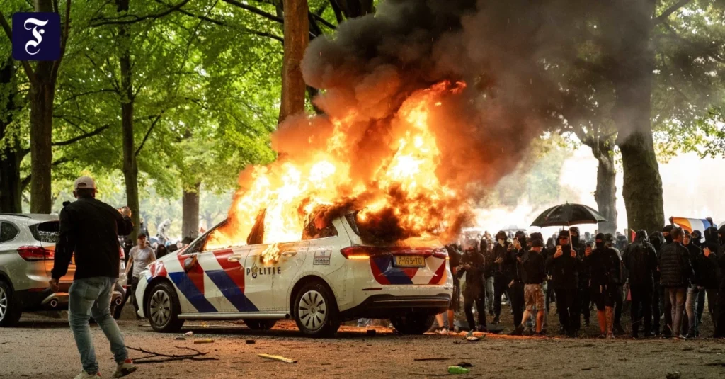 Ein Polizeiauto sei in Brand gesetzt worden. Die Sicherheitskräfte hätten daraufhin Wasserwerfer gegen die Randalierer gerichtet. Etliche seien festgenommen worden. Nach Angaben des Senders NOS schwenkten einige Demonstranten orange-weiß-blaue sogenannte Prinzenflaggen, die einst der National-Sozialistischen Bewegung (NSB) der Niederlande als Symbol dienten und heute von Rechtsextremisten verwendet werden.