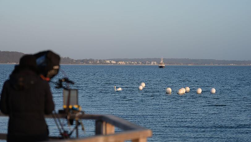 Der Buckelwal schwimmt laut Stephanie Groß vom Institut für Terrestrische und Aquatische Wildtierforschung derzeit in der Lübecker Bucht. Er sei weiter draußen in der Bucht gesichtet worden, sagte sie.