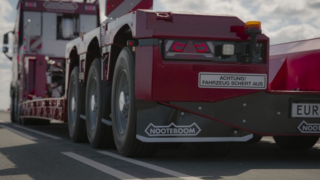Da längere Rotorblätter vor allem an der Wurzel schwerer und höher sind als die kürzeren Ausführungen, hat sich Nooteboom an dieser Stelle um Stabilität bemüht. Dazu hat der Fahrzeugbauer das Lenksystem in den Rahmen des Jeep-Dollys statt in den Schwanenhals integriert. Zudem sorgen laut Hersteller besonders torsionssteife zentrale Hauptträger und das 2.840 Millimeter breite Achsaggregat am Heck für Sicherheit.