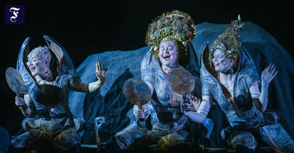 „Ruhig heitere Bewegung“ hat Wagner als Vortragsanweisung über die Partitur geschrieben. Bei Petrenko liegt der Schwerpunkt eindeutig auf „heiter“ im Sinne von „flott“. Die drei neckischen Rheintöchter – Louise Foor, Yajie Zhang und Jess Dandy – kommen damit ausgezeichnet klar. Selten einmal versteht man sonst so deutlich ulkige Zeilen wie diese: „Pfui, du haariger, höckriger Geck! Schwarzes, schwieliges Schwefelgezwerg!“