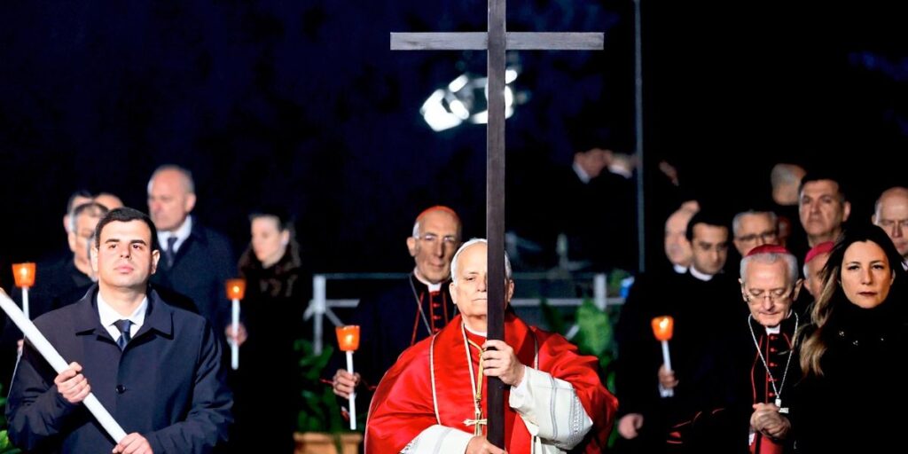 Vatikanstadt – Bei der Karfreitagsprozession vor dem Kolosseum in Rom hat Papst Leo XIV. das Kreuz zur Erinnerung an den Leidensweg von Jesus Christus am Kolosseum selbst getragen. Damit kehrte das neue Oberhaupt der katholischen Kirche zu einer Tradition der Osterfeierlichkeiten zurück. Zu der stimmungsvollen Prozession am Karfreitag, mit der an die Leidensstationen Jesu erinnert wurde, versammelten sich Zehntausende Gläubige vor dem antiken Amphitheater. Viele trugen Kerzen in der Hand.