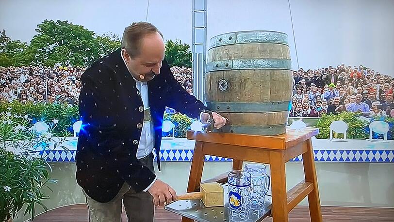 Zu einer guten Wiesn-Party gehört natürlich auch ein ordentlicher Fassanstich. An diesem Sonntag gebührt die Ehre keinem Geringeren als Johann Lafer. Zunächst wird der Starkoch, der am Vortag ein Jahr älter geworden ist, mit einem Geburtstagsständchen empfangen. Daraufhin darf er sich am Zapfhahn versuchen, was er in seinem Leben bereits „mehrmals“ übernommen hat.