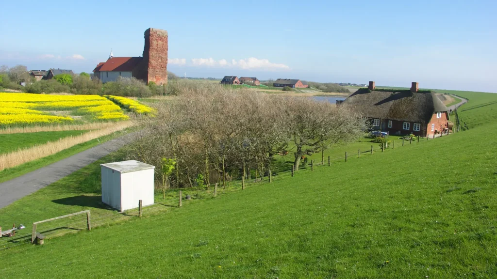 Einen Abstecher lohnt auch die imposante Nordermühle im Norden der Insel, eine gut erhaltene Windmühle aus dem Jahr 1652. Der sogenannte Zwickstellholländer stand damals auf dem Deich. Heute befindet er sich hinter dem neuen, rund acht Meter hohen Schutzwall.