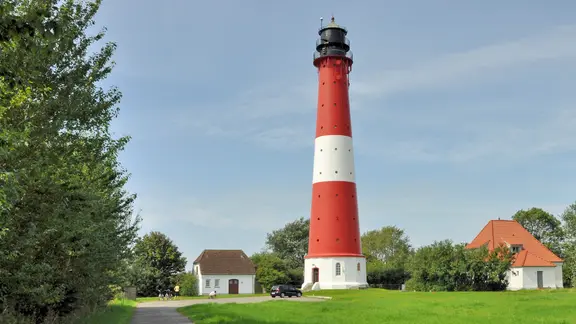 Im Süden der Insel steht der 41,5 Meter hohe, rot-weiße Leuchtturm. Wer den Aufstieg über die 140 Stufen bewältigt hat, wird mit einem weiten Ausblick über die Insel und das Wattenmeer belohnt. Tickets sind beim Kur- und Tourismusservice erhältlich, Kinder dürfen erst ab 8 Jahren mit auf den Turm.
