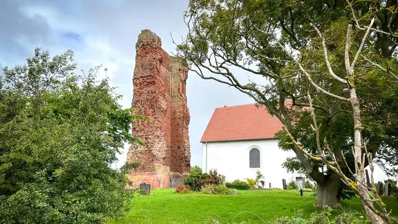 Für die Schifffahrt gibt es eine weitere wichtige Orientierungsmarke: die Alte Kirche St. Salvator aus dem späten 12. Jahrhundert an der Westküste. Die Turmruine aus rotem Backstein ist das Wahrzeichen der Insel und eine weithin sichtbare Landmarke. Im Inneren der Kirche befindet sich eine Arp-Schnitger-Orgel aus dem Jahr 1711, die noch heute regelmäßig bei Konzerten zu hören ist. Die Neue Kirche in der Inselmitte, ein Saalbau aus Backstein, stammt aus dem 17. Jahrhundert.