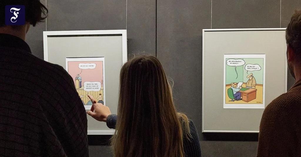 Bei Nietzsche heißt es, wer lange genug in den Abgrund blicke, in den blicke der Abgrund zurück. Bei Perscheid grinst er. Was schiefgeht zwischen den Menschen, was abstoßend ist an ihren Ausflüchten, Schwächen, Blindheiten und Fixationen, hat der Zeichner in seinen Cartoons jahrzehntelang festgehalten. „Perscheids Abgründe“ nannte er sie, mehr als 4300 Werke sind unter diesem Titel erschienen. Das Caricatura Museum für Komische Kunst versammelt in Frankfurt nun zahlreiche Arbeiten des 2021 gestorbenen Künstlers zu einer großen Werkschau.