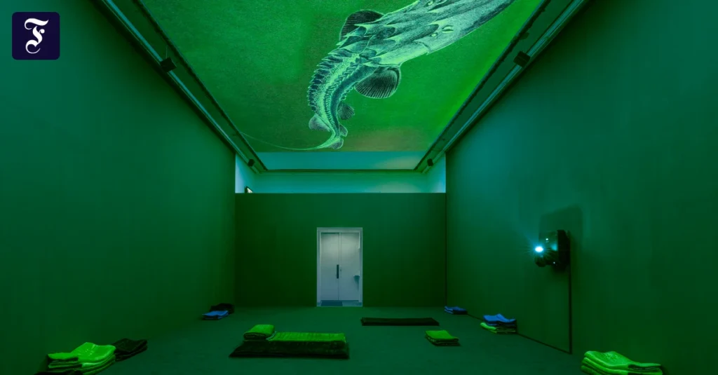 Im Untergeschoss wiederum hat die neue Kuratorin des Portikus, Juliane Bischoff, die mit Ismailova ihren Einstand gibt, ein Kino eingerichtet. Nicht nur derselbe dunkle, flauschige Teppich lädt wie im Ausstellungsraum dazu ein, sich länger niederzulassen. Immer donnerstags werden dort Filme gezeigt, die mit Ismailovas Arbeit zu tun haben, thematisch, formal, geographisch. Es ist eine offene Einladung, ebenso wie die Kunsthalle selbst sie nun ausspricht, zu bleiben, zu sehen, aufzunehmen, was im Hauptraum an der Decke Mensch und Natur verbindet. Sich irritieren zu lassen und auch zu trauern. Denn der Wind, der so eindrücklich weht, ist einer, der Trockenheit bringt und damit lebensfeindliche Umstände. „When the Water Turns to Wind“ ist also einerseits ein sehr poetischer Titel, beschreibt aber andererseits nichts weniger als eine menschengemachte Katastrophe.