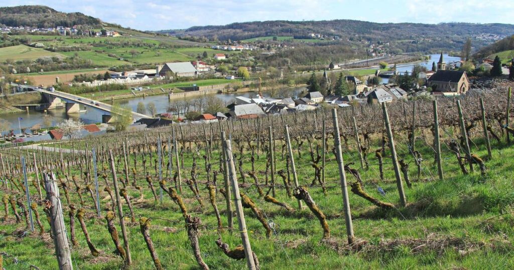 Steil ist der Anstieg auf den Stromberg oberhalb von Schengen. Auf dem Moselleᶾ-Trail wollen die Wandernden das Winzerdorf an der Obermosel umrunden – drei Länder, Luxemburg, Frankreich, Deutschland. 33 Kilometer und insgesamt fast 1.000 Höhenmeter liegen vor ihnen.