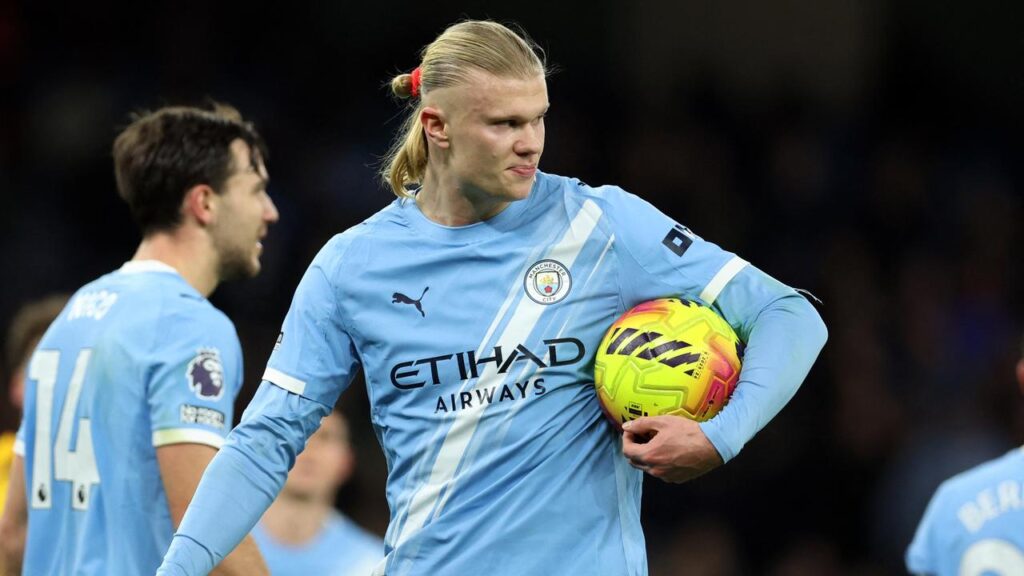 Haaland verwandelte sicher zu seinem 150. Tor für Manchester City. Dass er dafür nur 173 Pflichtspiele brauchte, ist in der Premier League einsame Spitze. Er steht in der laufenden Saison bei 20 Toren in 21 Ligaspielen und damit erneut auf Platz eins der Torschützenliste.