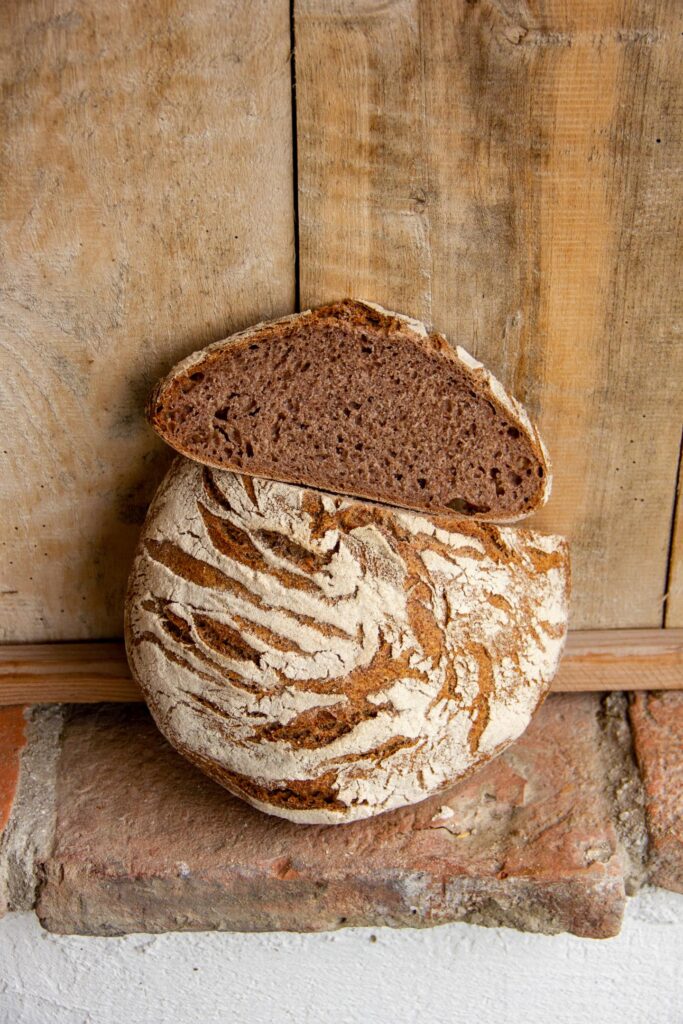 Manch einer, sogar jene, die es besser wissen müssten, würde solch ein Brot „Urgetreidebrot“ nennen, denn Lichtkornroggen wird fälschlicherweise als alte Sorte angesehen. Dabei ist es eine recht moderne Sorte aus den 2000er Jahren. Egal. Wichtig ist, dass all die verwendeten Sorten (Rotkornweizen, Lichtkornroggen und Oberkulmer Rotkorn als Dinkelvertreter) wunderbar schmecken und Farbe ins Brot bringen.